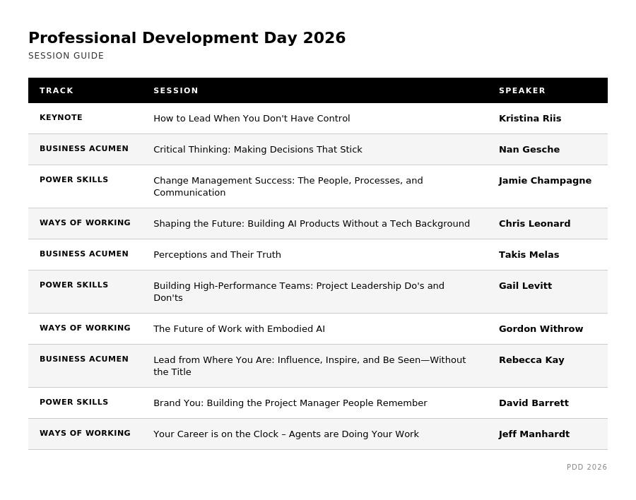 This conference goes beyond tools and templates to focus on the real skills project professionals need right now - leadership, influence, communication, adaptability, and decision-making in uncertain environments.